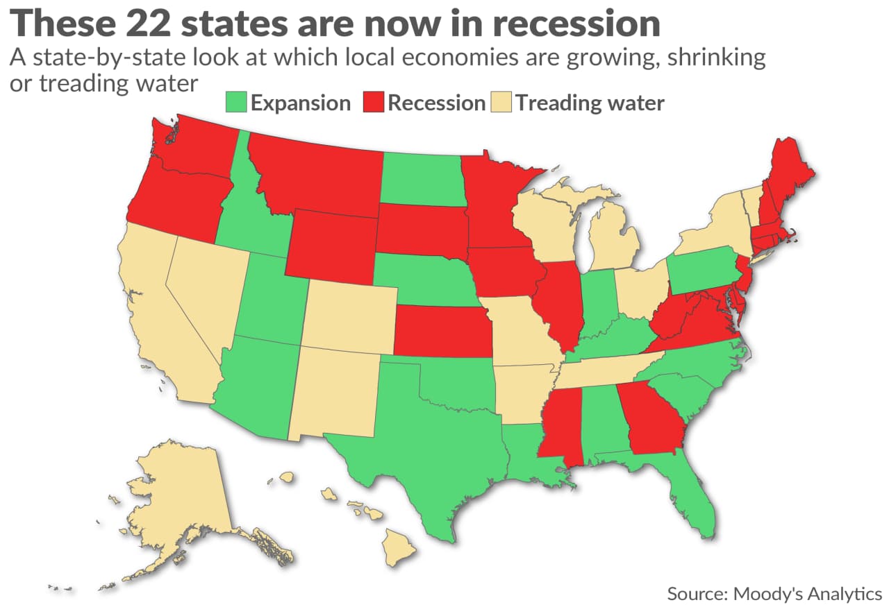The U.S. economy is very close to falling into a damaging contraction — and many states are already in a recession, according to Mark Zandi, chief economist at Moody’s Analytics.
