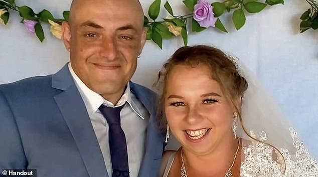 Roland Griffiths and Kylie Louise Sheahan on the day of their wedding