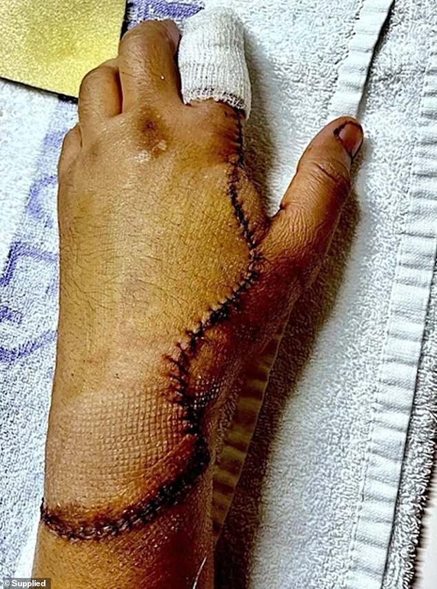 Doctors initially thought they would have to amputate his left hand, but surgeons were able to reattach it by inserting screws into his wrist and hand during five hours of emergency surgery.