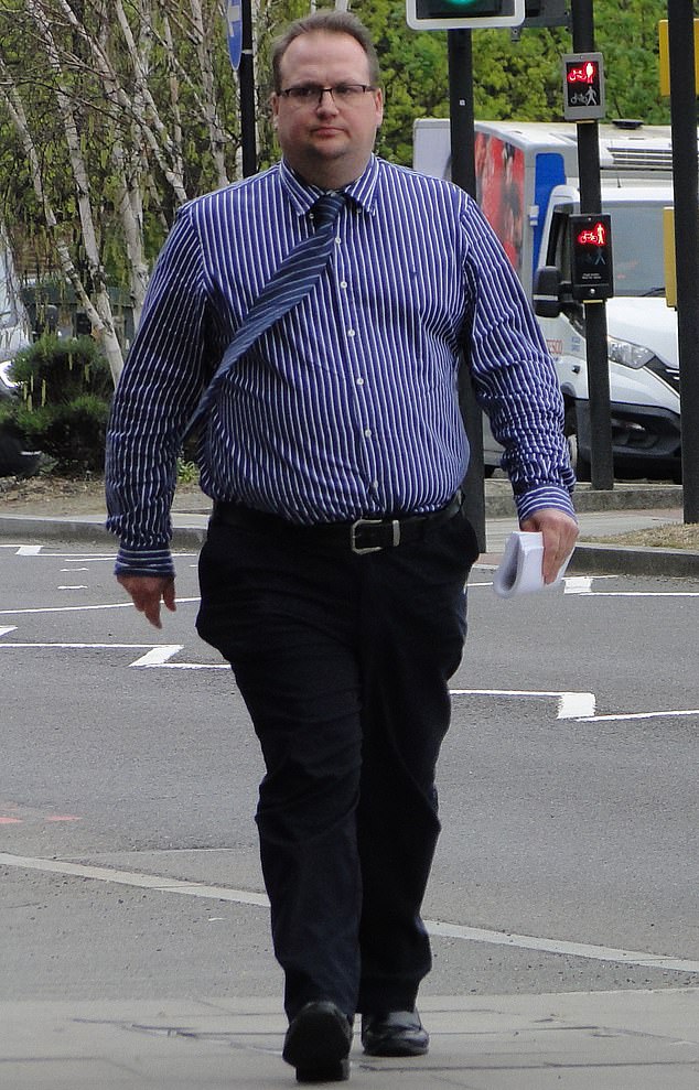 Earlier, prosecutor Robin Griffiths told the jury: ‘Over several years, Simon Grimes abused the trust of his mother Linda by transferring funds from her RBS and Nationwide accounts into his own bank account.