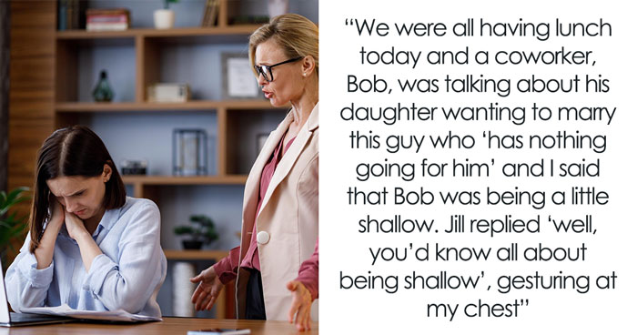 So, the pile of these jokes kept growing, and it was bound to overspill at some point. And it did during one lunch, when Jill once again implied that the author is “shallow” because she got chest implants. The original poster lost it and told her everything.