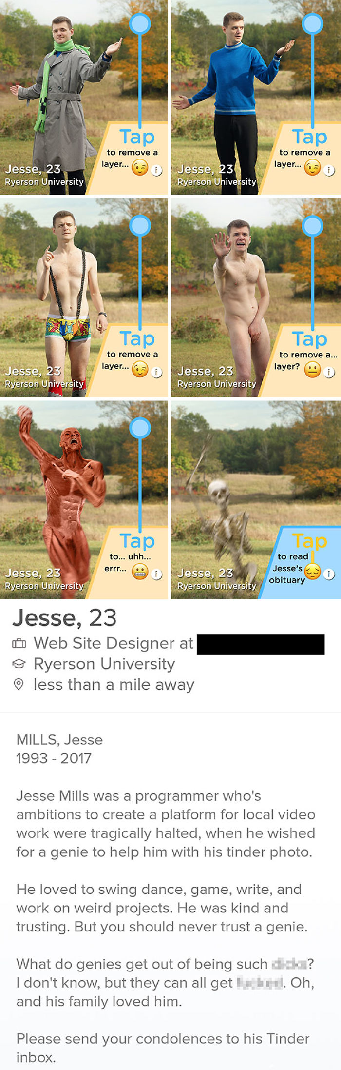 There are plenty of fish in the sea, so how do you stand out in the vast dating ocean that is Tinder? – with a killer profile. This list of flashy and hilarious profiles from people on the popular dating app proves that sometimes you have to take a risk to get that right swipe.