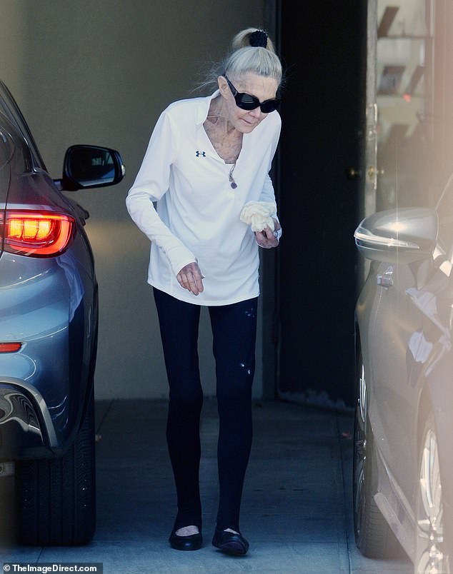 Sporting a simple white shirt and black leggings, the Colorado native was a far cry from her red carpet days alongside her soap opera co-stars Charlene Tilton, Linda Gray, and Patrick Duffy.