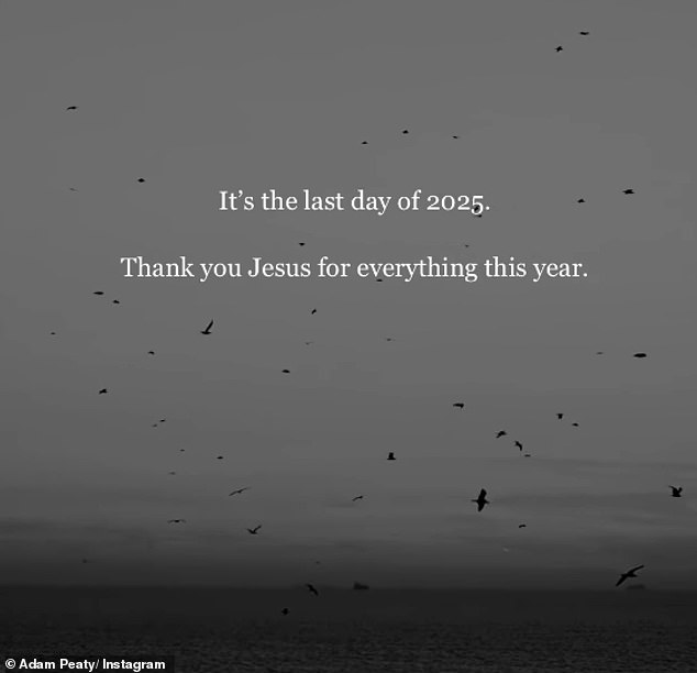 ‘It’s the last day of 2025. Thank you Jesus for everything this year,’ read his message, emblazoned across a serene image of gulls soaring above an ocean.