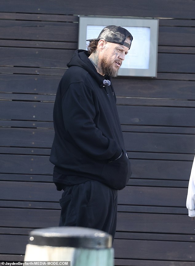 US-born rapper Jelly Roll has taken to social media claiming he was ‘treated like a criminal’ after entering an upscale fashion house in Sydney. Pictured in Sydney on Wednesday