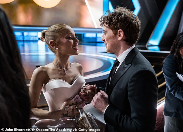 Ariana Grande’s costar-turned-boyfriend Ethan Slater might look like he has a slim 5ft7in frame, but he’s surprisingly ripped in a newly-released deleted scene from their hit film Wicked: For Good (pictured March 2)