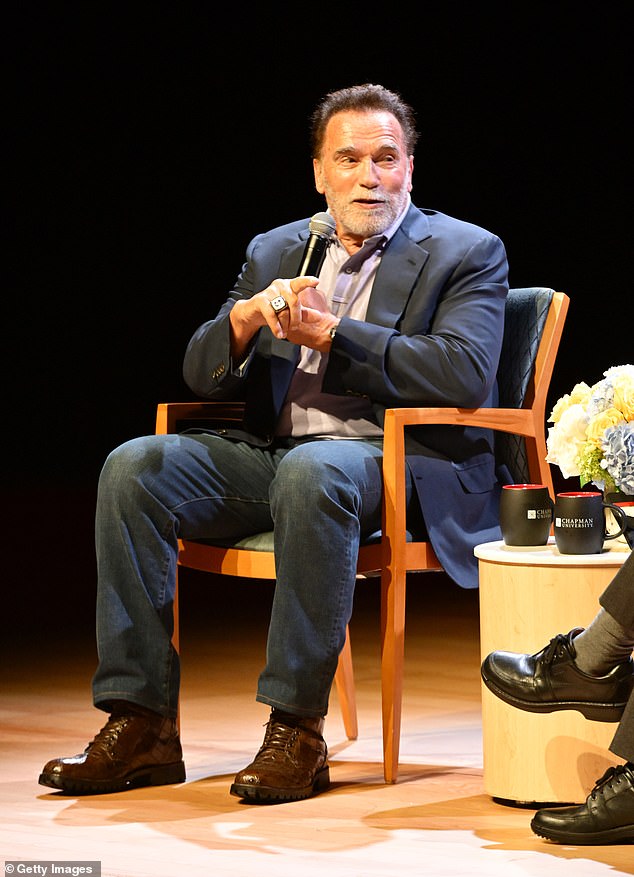 Arnold Schwarzenegger, 78, opened up about an act of kindness he recently completed on behalf of his heroes – United States veterans. Pictured in Orange, California last month