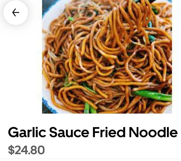 The Perth local had ordered two dishes via an app: Garlic Sauce Fried Noodle, priced at $24.80, and Garlic Mixed Vegetables, which cost $19.80.