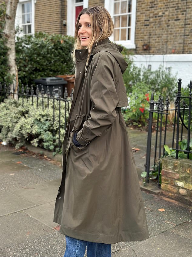 A classy longline parka with a funnel neck, hood and elasticated cuffs. I’m 5’10”, this sits comfortably below my knees, offering real protection without overwhelming me. It nips in at the waist so I never feel swallowed, and the snug cuffs look elegant while doing a very effective job of keeping the rain out – I stayed completely dry after a long cycle in miserable weather. Practical, flattering and genuinely worth the investment. Windy, torrential or just drizzling, this won’t let you down.
