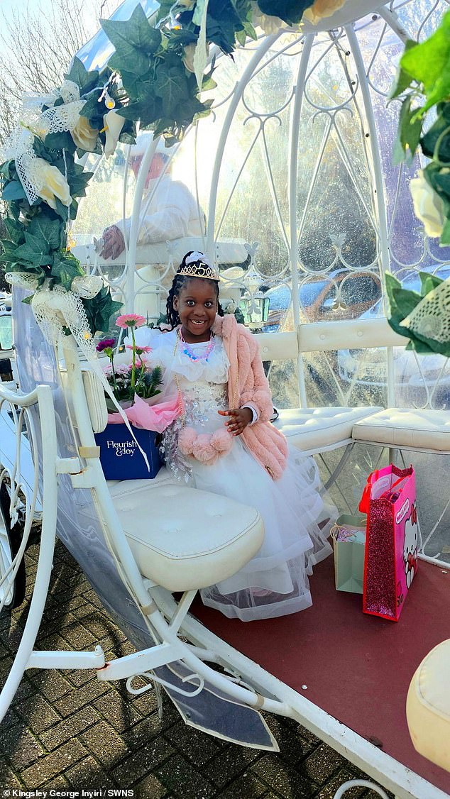 Rebecca Kingsley Inyiri, five, rolled up to her birthday party on December 6 in a Cinderella-style horse-drawn carriage