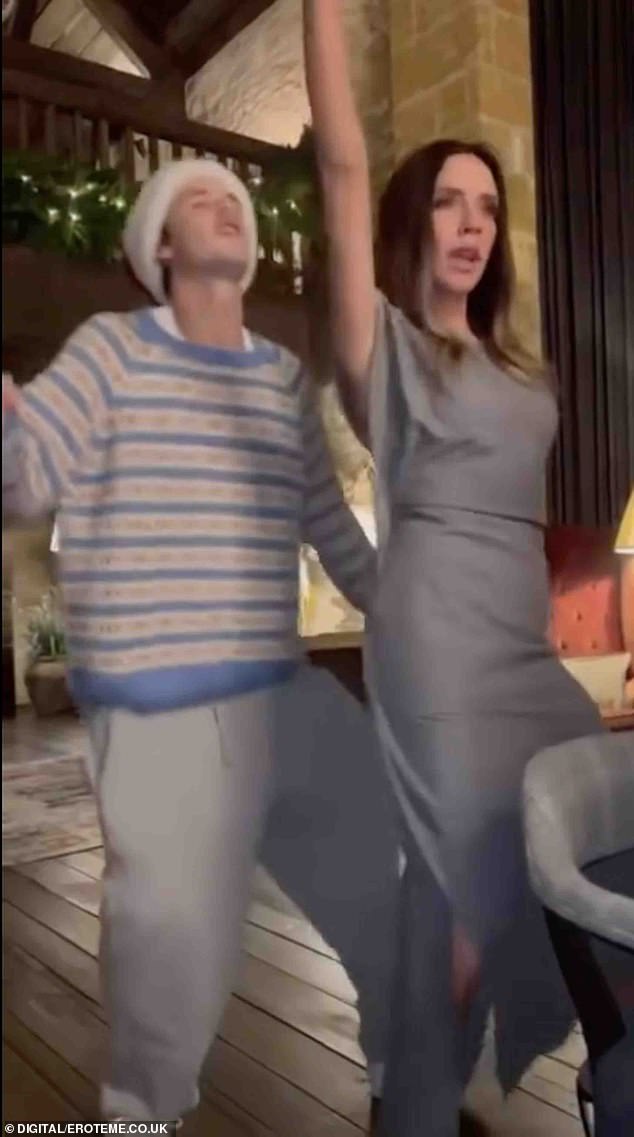 A wedding guest has backed up Brooklyn Beckham’s claims that his mother Victoria Beckhamdanced ‘inappropriately’ with him at his wedding (Victoria picured dancing with son Cruz at a Christmas party)