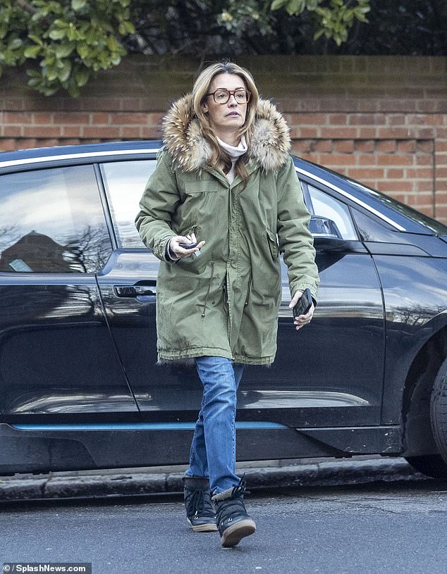 The TV presenter, 49, looked stylish in a pair of oversized aviator glasses and wrapped up warm in a khaki green parka with a fur-lined hood.