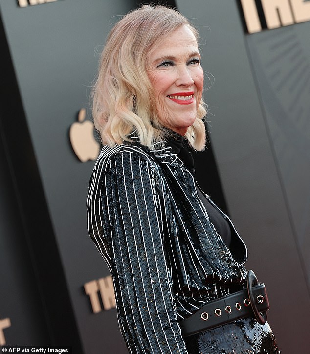 During her acceptance speech, O’Hara – who also won a Golden Globe and a SAG Award – said: ‘I will forever be grateful to Eugene and Daniel Levy for the opportunity to play a woman of a certain age, my age, who gets to fully be herself.’