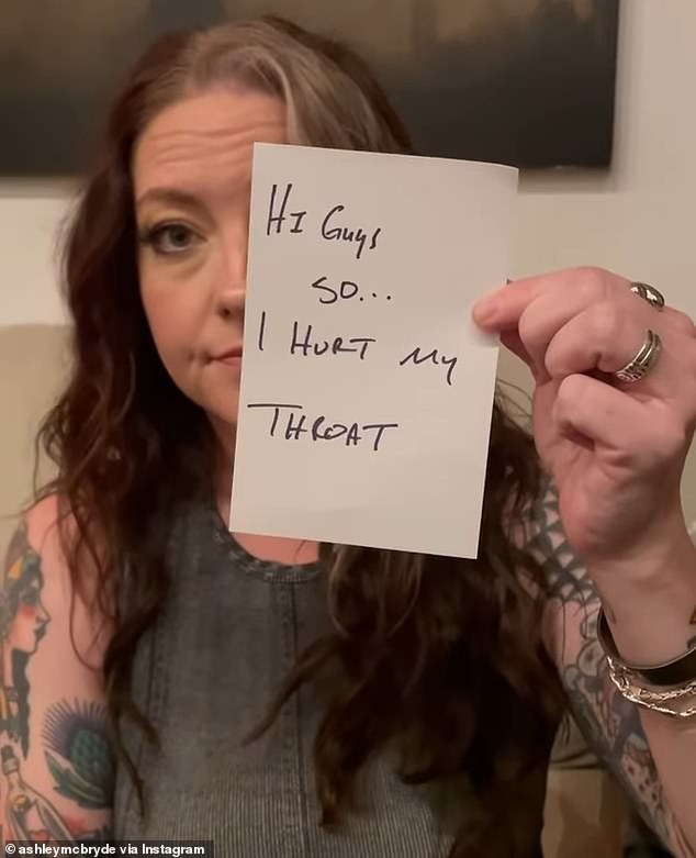 Country singer Ashley McBryde announced that she damaged her vocal chords