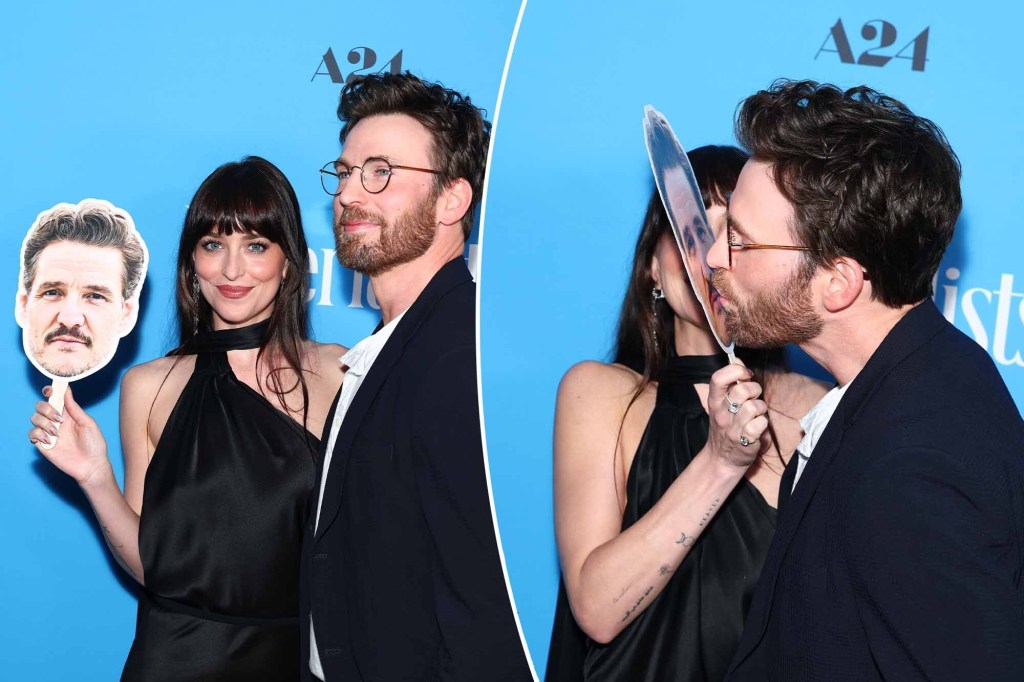 Pedro Pascal was not just at the “Materialists” premiere in spirit, but also in…cardboard? Dakota Johnson and Chris Evans made sure to bring their co-star along in some fashion since he couldn’t be in attendance. Watch the full video to see the three at the premiere!