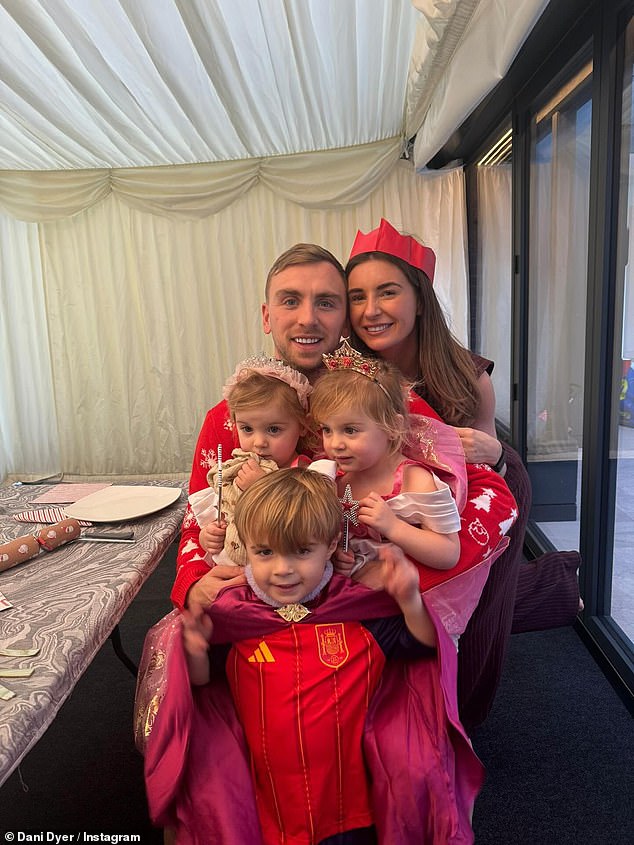 Dressed in festive outfits, the TV personality, 29, and her husband Jarrod Bowen, 29, looked in high spirits as they posed for a heartwarming snap with their children around the dinner table on Christmas Day.