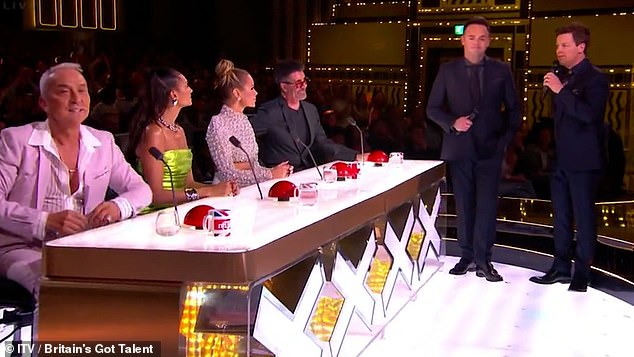 Hosting duo Ant and Dec, both 48, were just introducing the next contestant – magician Trixy as they stood next to the judges panel.