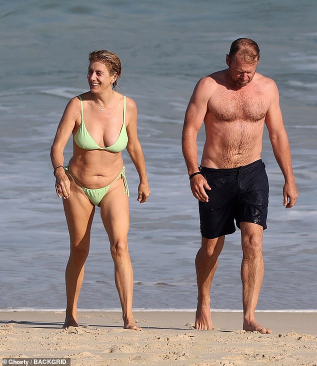 The Emily In Paris star, 56, showed off her incredible figure in a skimpy lime green bikini as she enjoyed a dip in the sea with Aussie farmer Andrew.