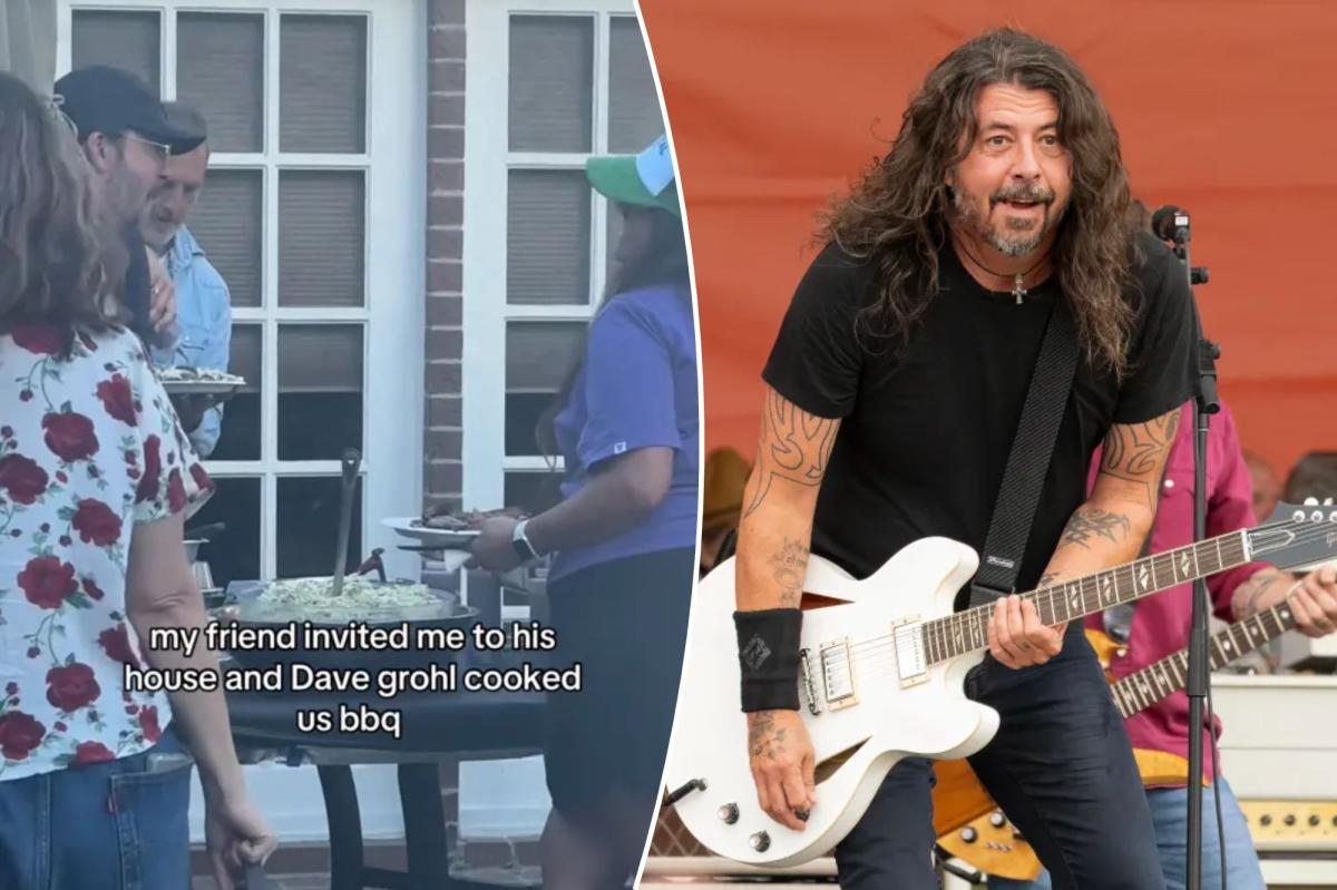 Dave Grohl, the Foo Fighters frontman and former Nirvana drummer, was captured happily working the barbecue and interacting with guests during an unexpected appearance at a pal’s backyard show, according to viral social media footage posted last week.