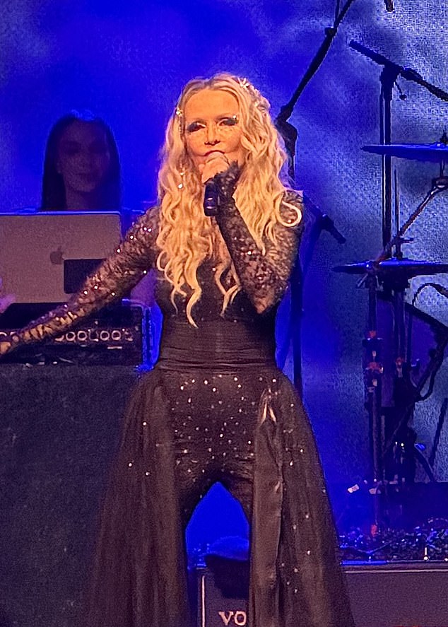 The 56-year-old former actress appeared as a ‘guest performer’ as part of a one-off show which was headlined by Russell’s band, Indoor Garden Party