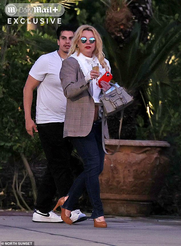 As a bubbly Spears left Stonehaus wine bar in Westlake Village, California, a she was accompanied to her car by a member of the venue's staff