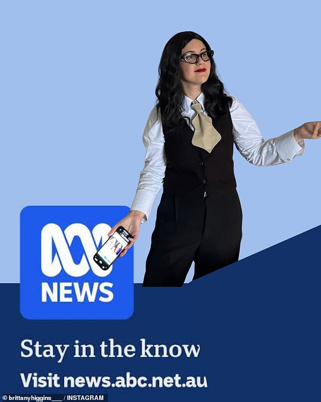 Brittany Higginslooked unrecognisable as she attended a costume party over the weekend. She sported a black wig, bright red lipstick, a black pantsuit, crisp white long-sleeve shirt, and a leather tie – a nod to journalist and commentator Annabel Crabb’s ABC election coverage