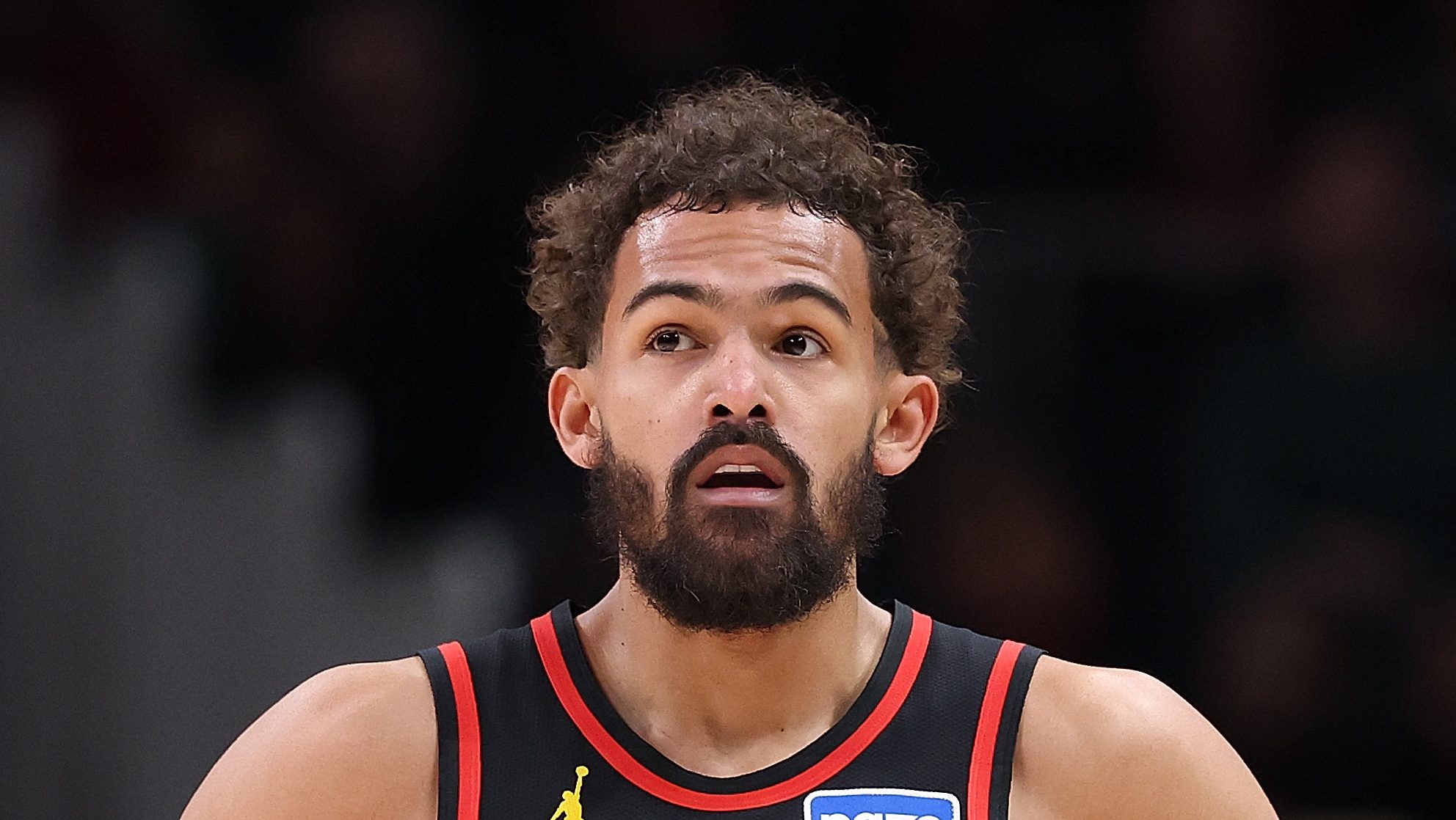 ATLANTA, GEORGIA – DECEMBER 21: Trae Young #11 of the Atlanta Hawks looks on against the Chicago Bulls during the first quarter at State Farm Arena on December 21, 2025 in Atlanta, Georgia. NOTE TO USER: User expressly acknowledges and agrees that, by downloading and or using this photograph, User is consenting to the terms and conditions of the Getty Images License Agreement. (Photo by Kevin C. Cox/Getty Images)