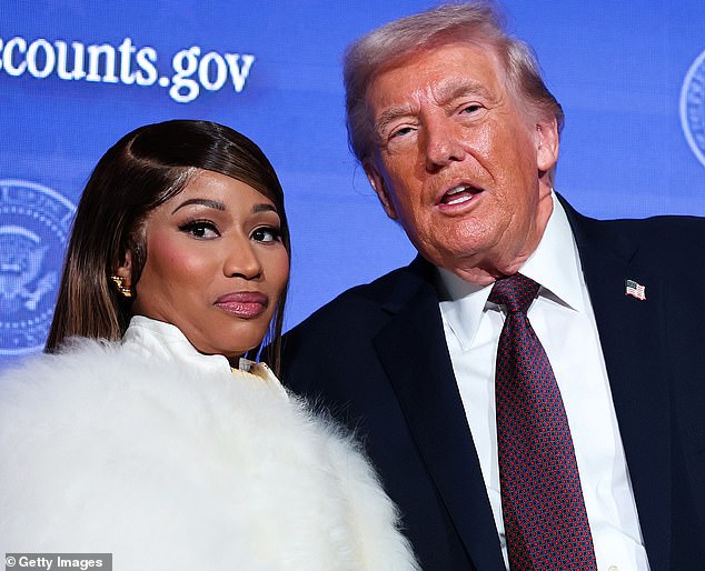 Nicki Minaj joined President Donald Trump on stage as he delivered remarks during the Treasury Department’s Trump Accounts Summit on Wednesday