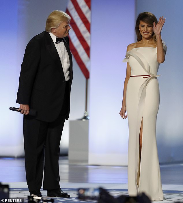 She’s set to return to the White House in January – and Melania Trump will no doubt bring a lavish wardrobe filled with clothes that didn’t previously fit the mould of First Lady (pictured: Donald and Melania Trump at the Inauguration Freedom Ball in Washington in January, 2017)