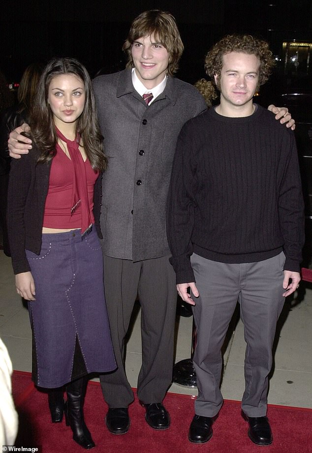 Despite Danny Masterson (pictured, right) being convicted of rape, Mila Kunis (pictured, left) and Ashton Kutcher (pictured, centre) wrote letters supporting their friend and former co-star, begging the judge for leniency when it came to sentencing (seen at the premiere for Traffic in Beverley Hills in 2000)