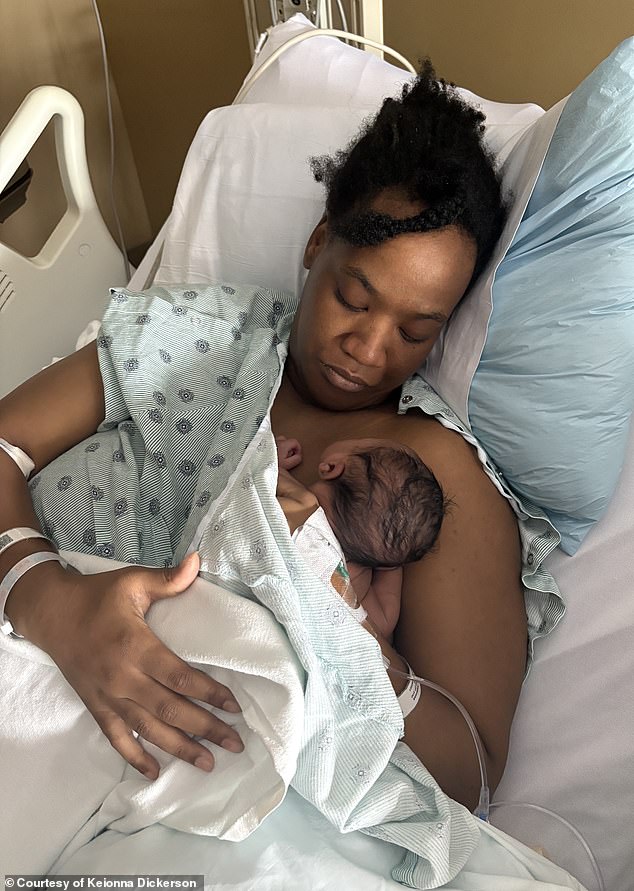 Keionna Dickerson went to the hospital for severe stomach pains in July, and was shocked to learn that she was in active labor
