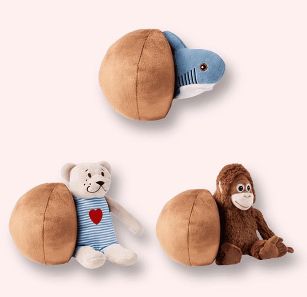‘When it’s flipped inside out it reveals what you actually get. This is so adorable – I got the blue shark and the heart teddy bear.