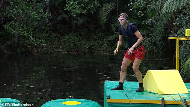 Coming face-to-face with the Wrecking Balls of Rage, the TV personality, 40, attempted to win stars for her campmates while slipping and sliding around an obstacle course.