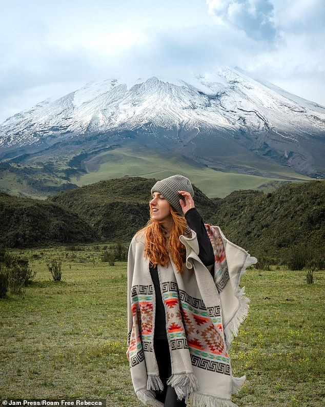 Rebecca Tribelhorn from Oregon , has revealed the ‘genius’ lies she tells to keep safe whilst on her travels abroad (pictured in Ecuador)