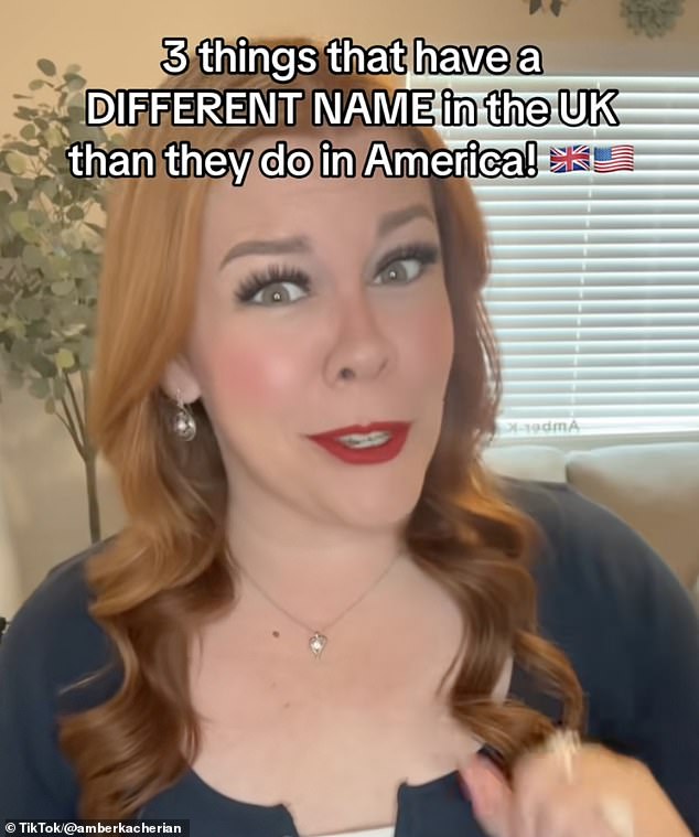 Amber starts the video with a warning: ‘British people – do not say these words in America unless you want people to look at you very strangely.’