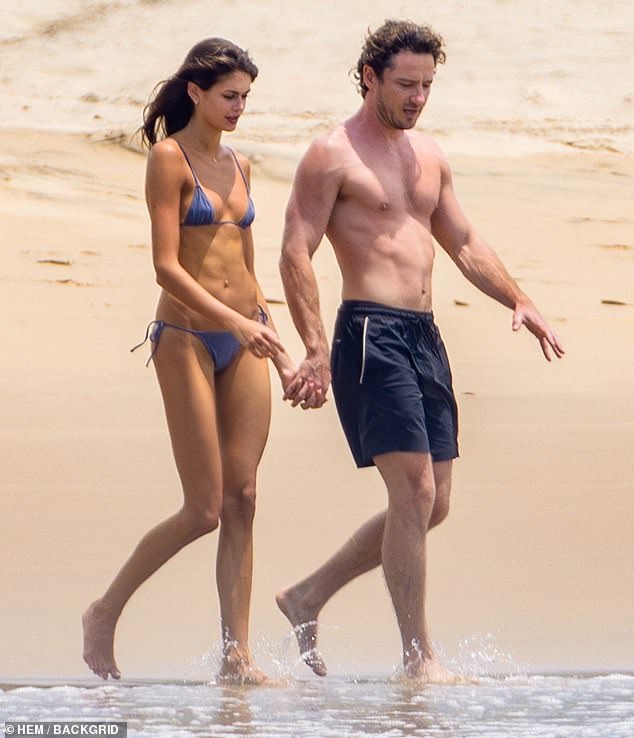 Gerber looked at ease while strolling the beach with Pullman, 33, on Sunday