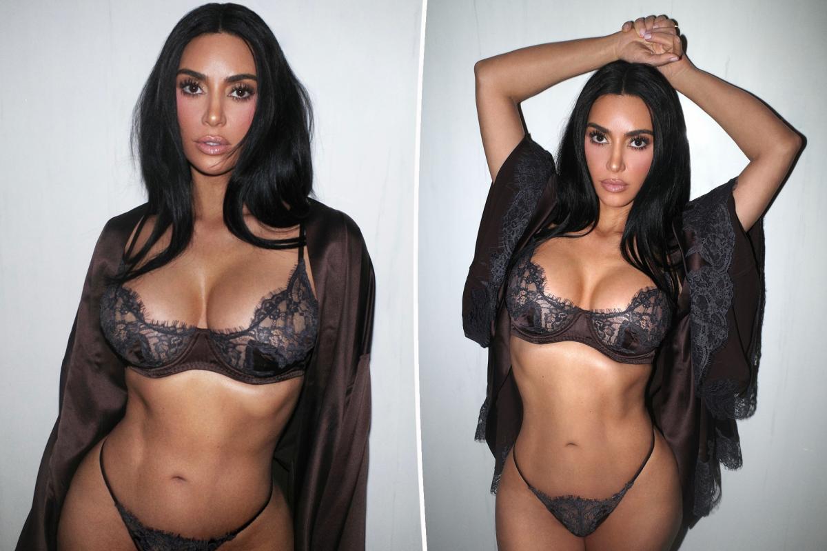 In a series of Instagram photos posted Wednesday, Kim Kardashian struck a series of sultry poses in a skimpy lingerie set from her Skims brand.