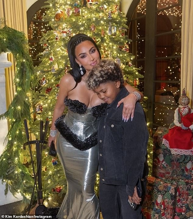 Kardashian also welcomed eight-year-old daughter Chicago and six-year-old son Psalm during her six-year marriage to third ex-husband Kanye ‘Ye’ West, which ended in 2021 (pictured December 25)