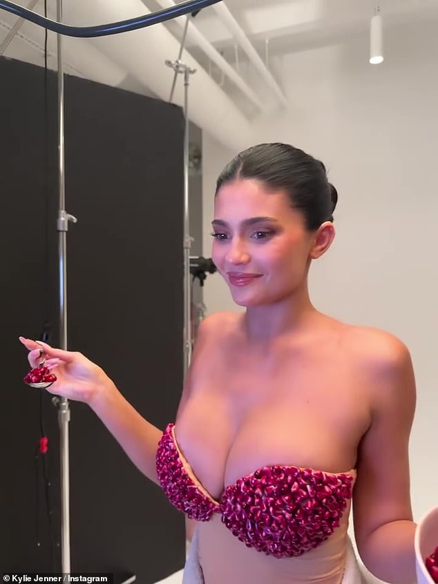 Yet Kylie Jenner took things up a notch on her latest shoot as she posed in a bra made of pomegranate seeds alongside a sheer nude body.