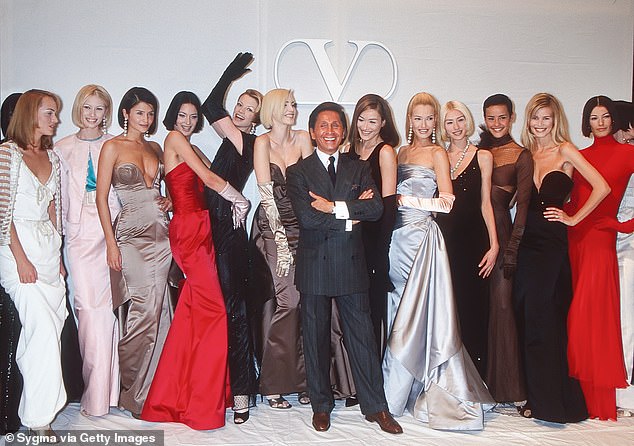 Valentino founded the Valentino label in 1960 and sold the brand in 1998 for $300million and designed his last collection in 2008 (pictured 1995)