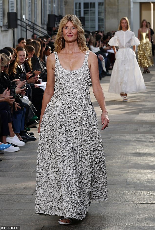 Laura Dern was a vision in a floral gown as she graced the Gabriela Hearst runway on Wednesday during Paris Fashion Week