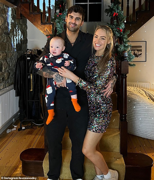 Laura Woods looks healthy and happier than ever as she shared shared sweet snaps on Tuesday of her Christmas celebrations with her fiancee Adam Collard and son Leo