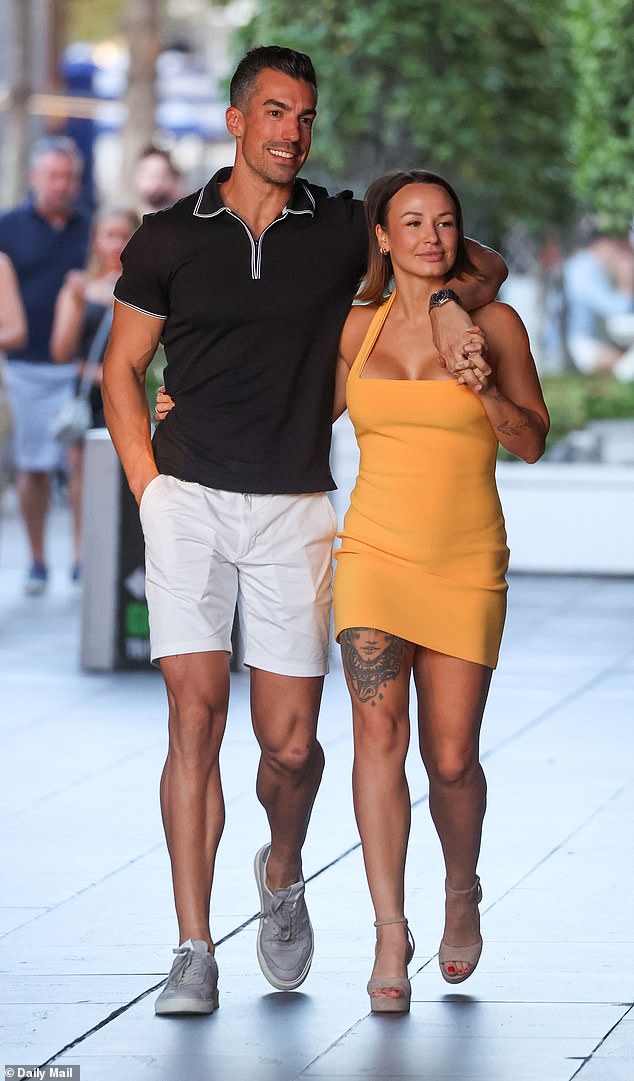 The pair appeared relaxed and affectionate as they stepped out for a low-key evening, holding hands as they made their way to the restaurant before enjoying cocktails at sunset.