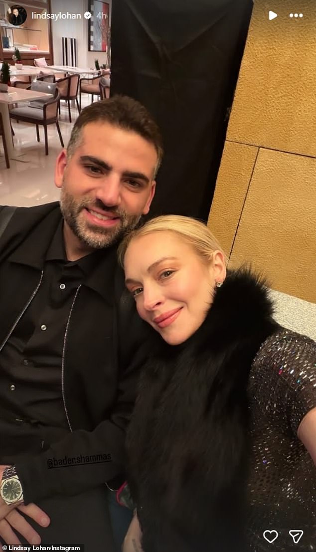 Lindsay Lohan continued to show off her incredible youthful glow as she cozied up to her husband Bader Shammas for a rare selfie on Tuesday