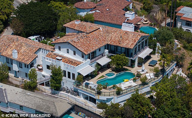 Exclusive aerials images show the Oscar-winning actor has transformed the grounds of his sprawling Hollywood Hills home that he now shares with girlfriend, Ines de Ramon – swapping out traditional landscaping for rows of palm trees.