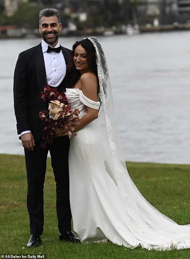 Later, the pair seemed perfectly at ease as they posed for their wedding snaps against the romantic backdrop of Sydney Harbour.