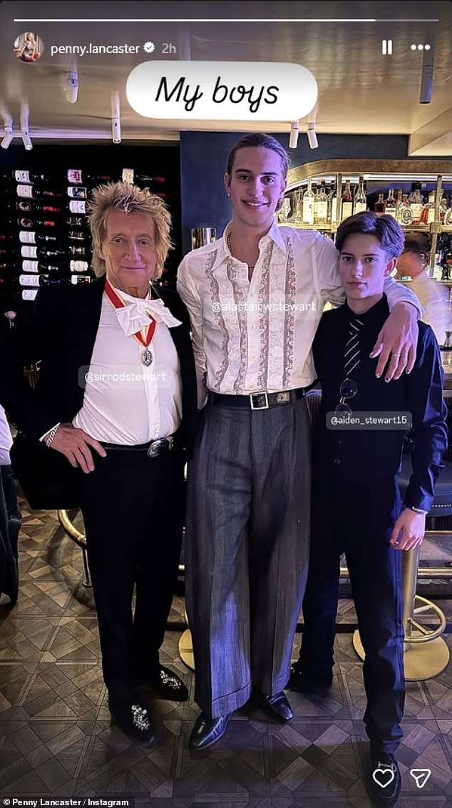 Penny Lancaster shared a sweet snap of her husband Rod Stewart and their two sons together on Saturday night