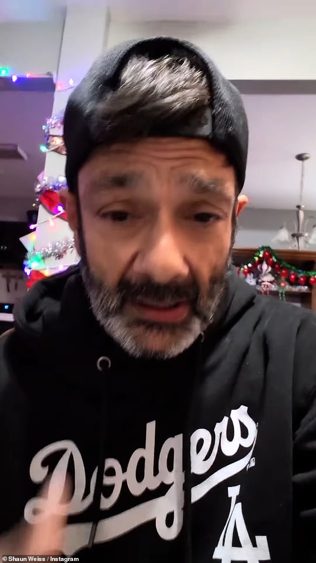 Mighty Ducks alum Shaun Weiss has revealed Tylor Chase has returned to the streets after he was placed in a 72-hour involuntary psychiatric hold last week; Weiss pictured in a Monday Instagram video