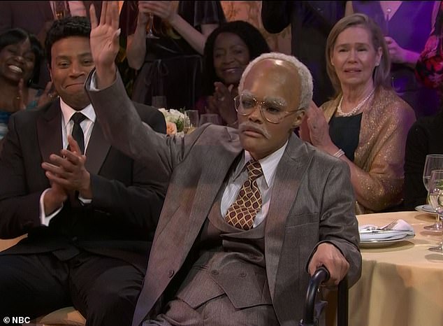 An Oscar-nominated actress looked unrecognizable as she transformed into an older man during the latest episode of SNL.