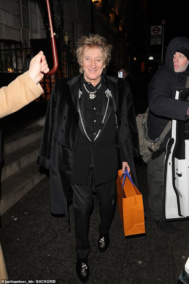 Sir Rod Stewart was joined by his glamorous wife Penny Lancaster for a date night at celebrity hotspot Annabel’s in London on Friday